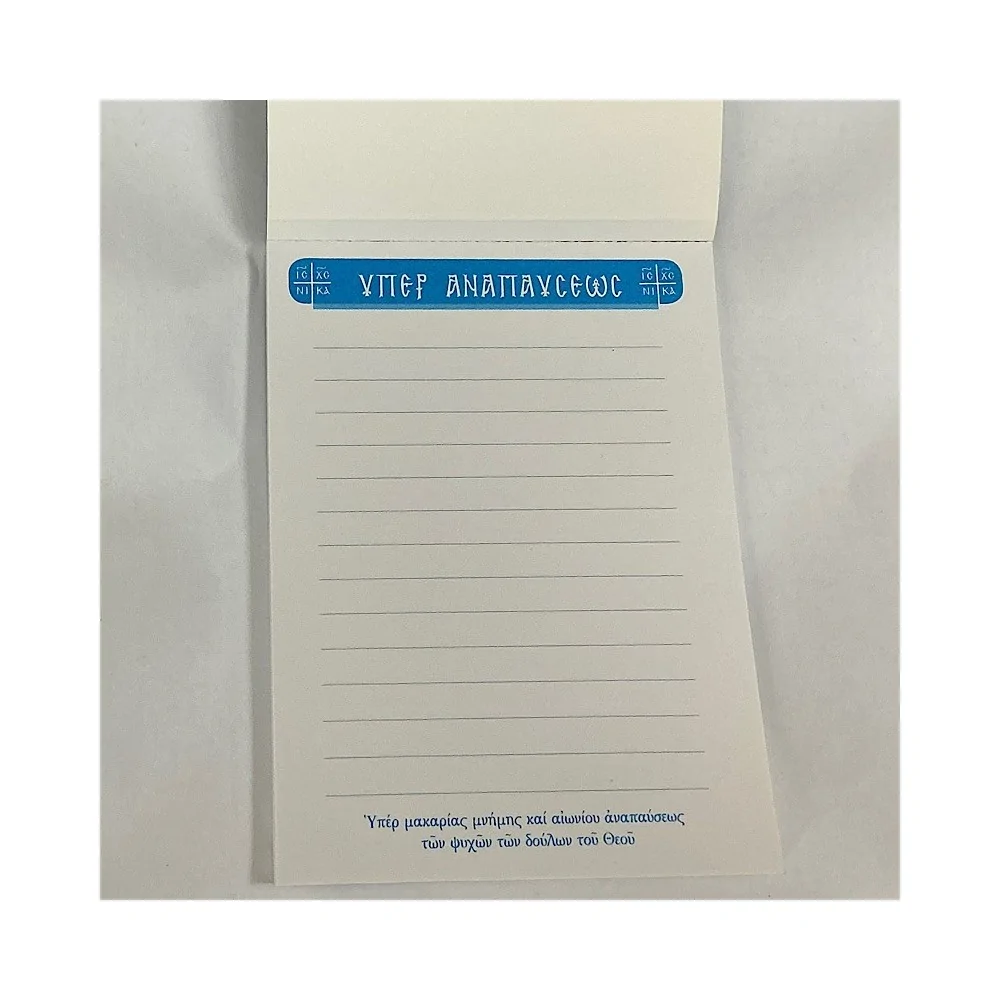 Μπλοκ Υπέρ Αναπαύσεως για μνημόνευση κεκοιμημένων. (50 φύλλα)