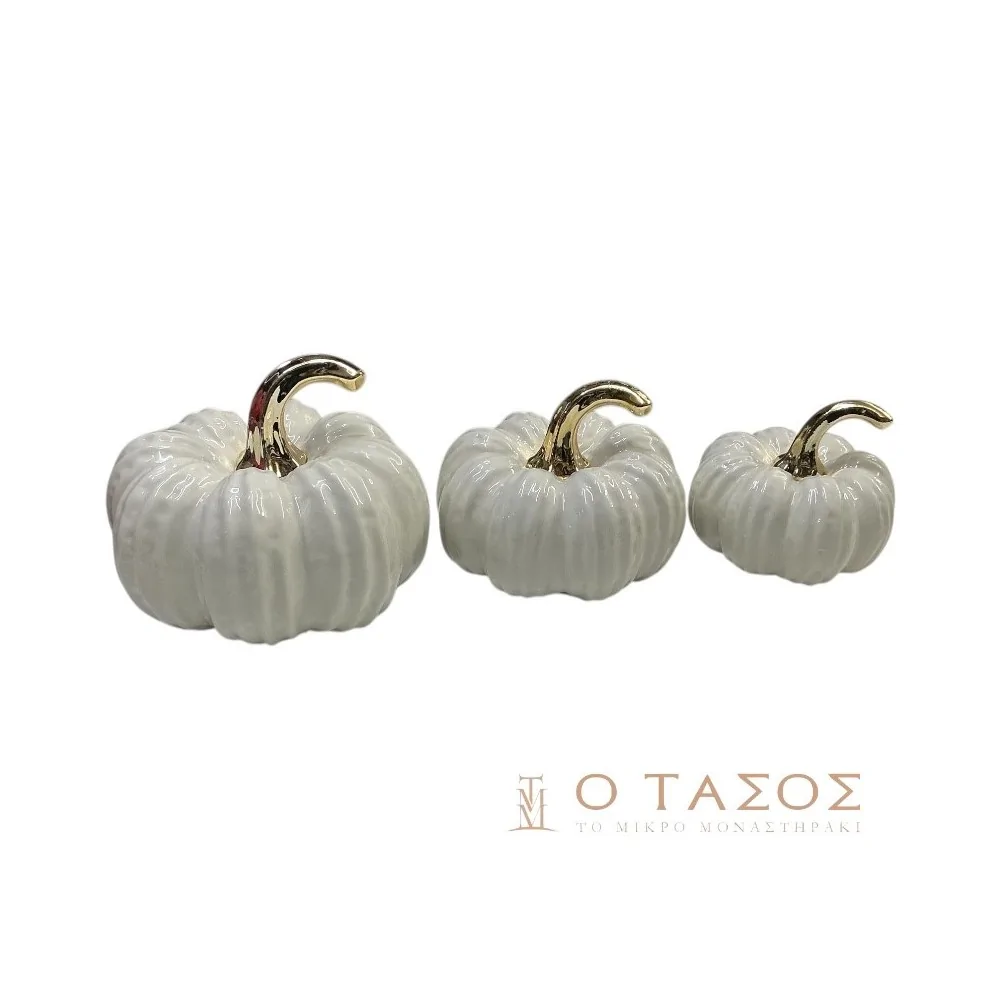 Διακοσμητική κεραμική κολοκύθα σε λευκό χρώμα.